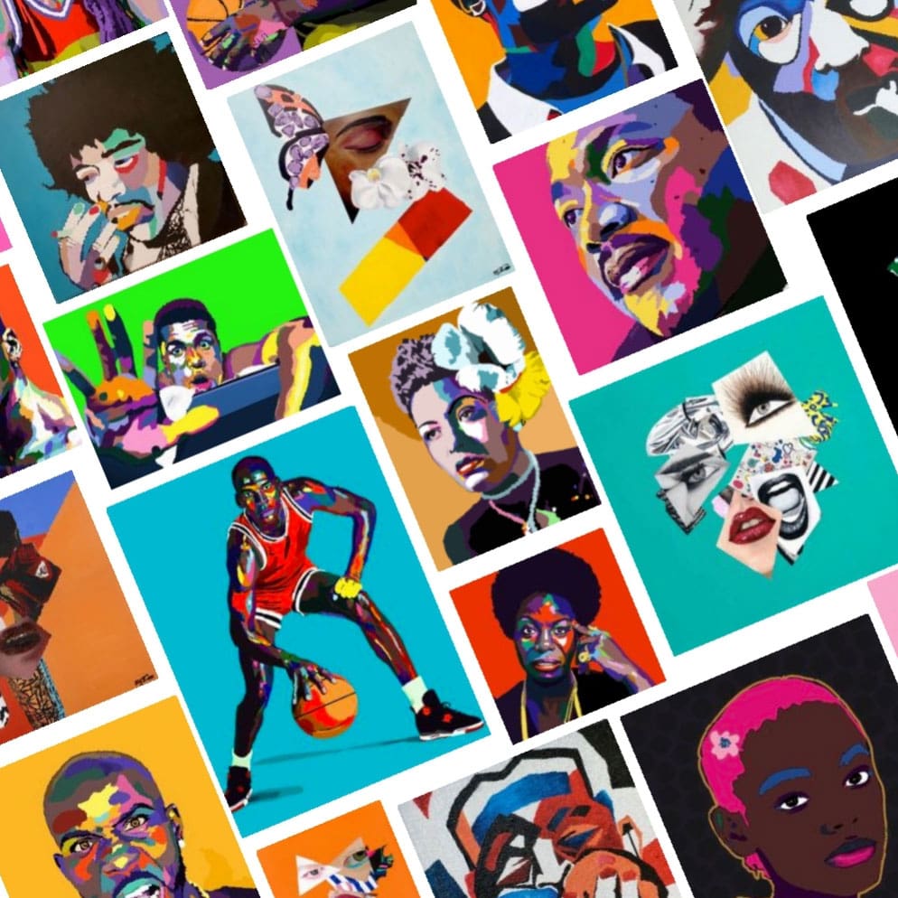 Describe the artist’s style. Talk about the colours, shapes, characters or faces you can see. Use visual words like bright, dark, surreal, simple, detailed.