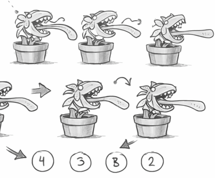 This allowed me to animate the plant and especially the tongue without redrawing everything. At first the movement looked weird and too stiff, and the base of the plant was moving when it shouldn’t, and this was happening because the Puppet Warp pins were placed too close together and also not enough pins were locking the base in place, but I didn’t really notice this straight away and only after watching the animation a few times, and then going through it frame by frame, it became easier to see where the movement was actually breaking and looking wrong, and which parts was moving when they didn’t really need to, so to fix it I had to reposition the pins, add more pins around the base to stop it from stretching, and reduce the amount of movement on the tongue, and after testing different versions and adjusting the pins again and again the movement became smoother, more controlled, and the plant finally felt more natural and believable instead of stiff and broken.