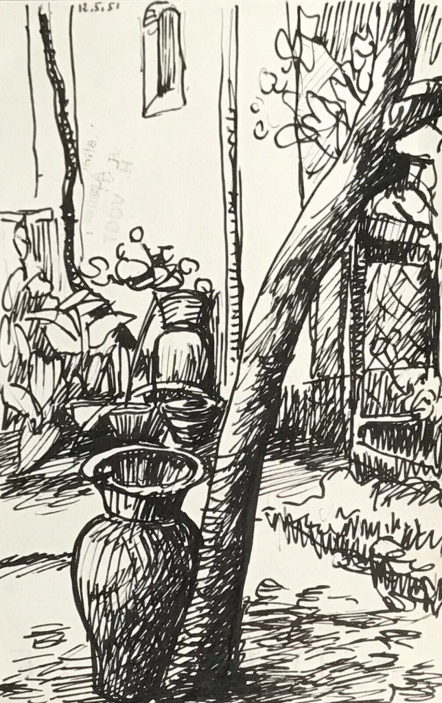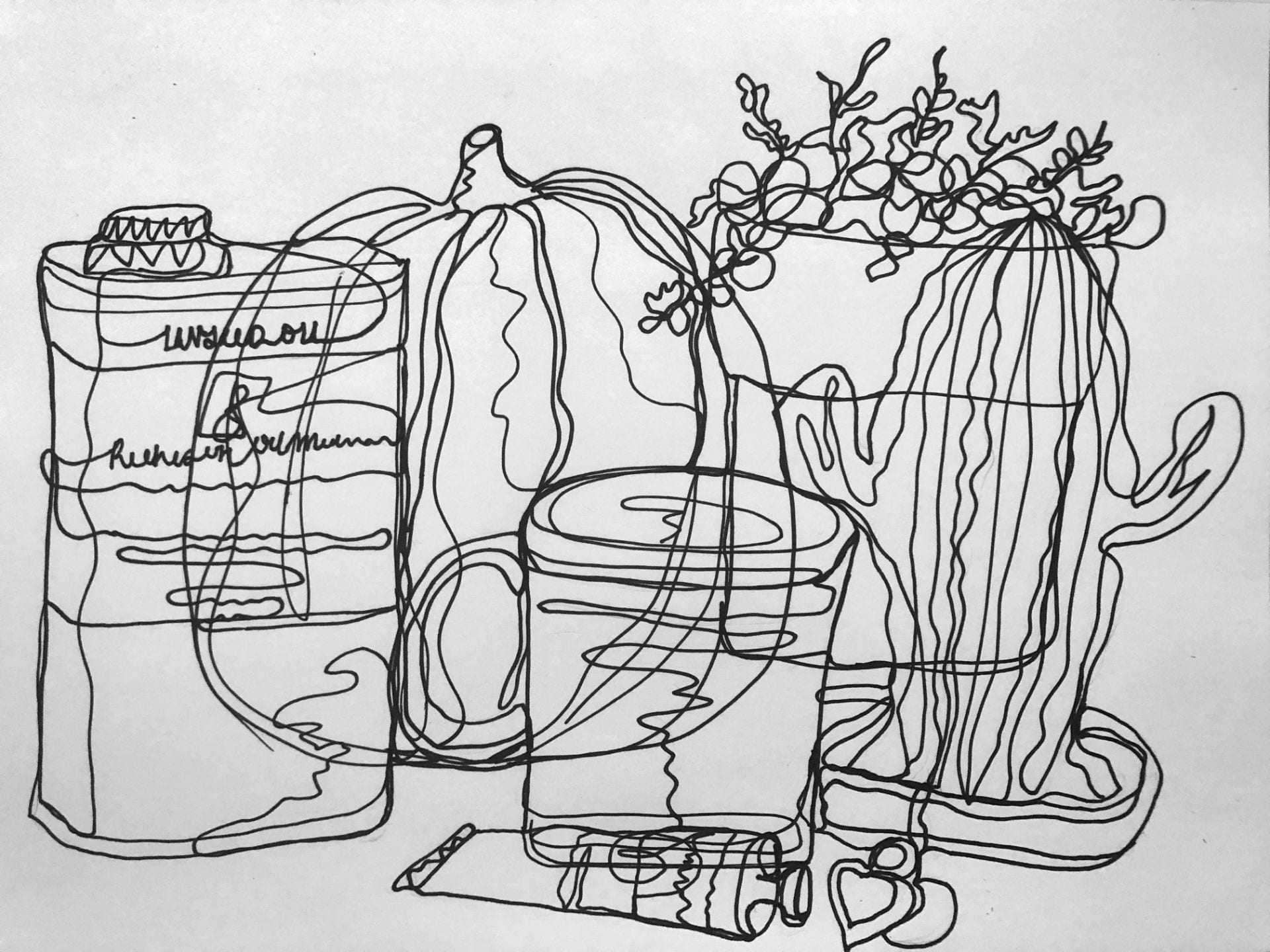 Now working from the still life – collection of objects, experiment with continuous line drawing.
