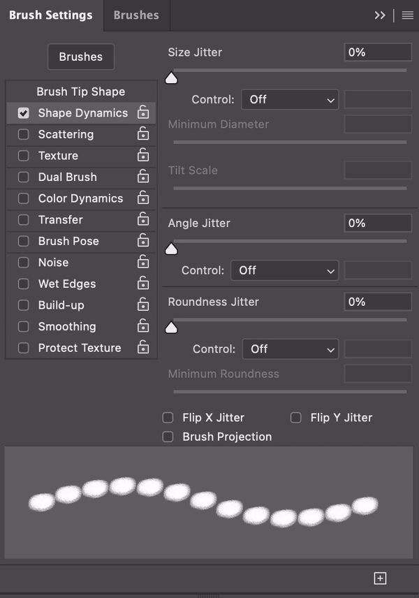 Size Jitter makes the brush stroke change size randomly as you paint.